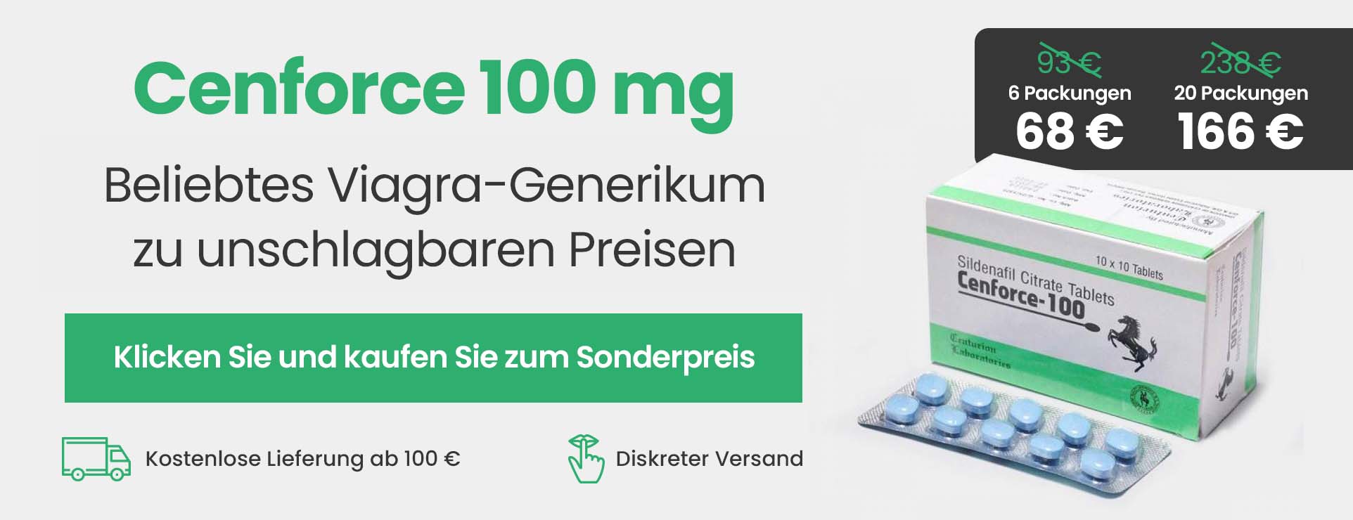 Cenforce 100 mg von der Pharma Gesellschaft Centurion Laboratories Prv. Ltd. ist ein vollwertiger Ersatz von Viagra. Die Wirkstoff ist Sildenafil für bessere Erektion und ähnlich wie bei anderen Viagra Generika ist der Preis viel günstiger.