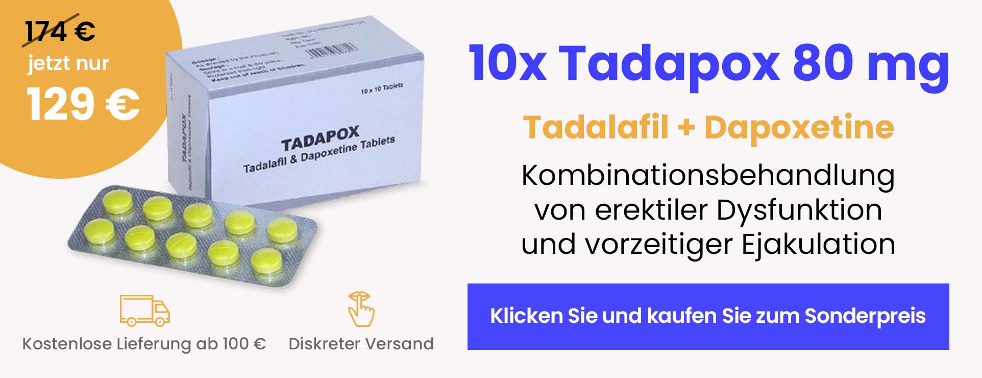 Tadarise 40 mg ist zusammen mit Arzneimittel Tadalis SX einer der meistverkauften Arzneimittel mit Tadalafil zur Heilung der Erektionsstörungen. Es ist ein vollwertiger Ersatz von Cialis, sogenannter Cialis Generikum. Potenzmittel mit Tadalafil sind besonders für Ihre lang anhaltende Wirkung beliebt - bis 36 Stunden.